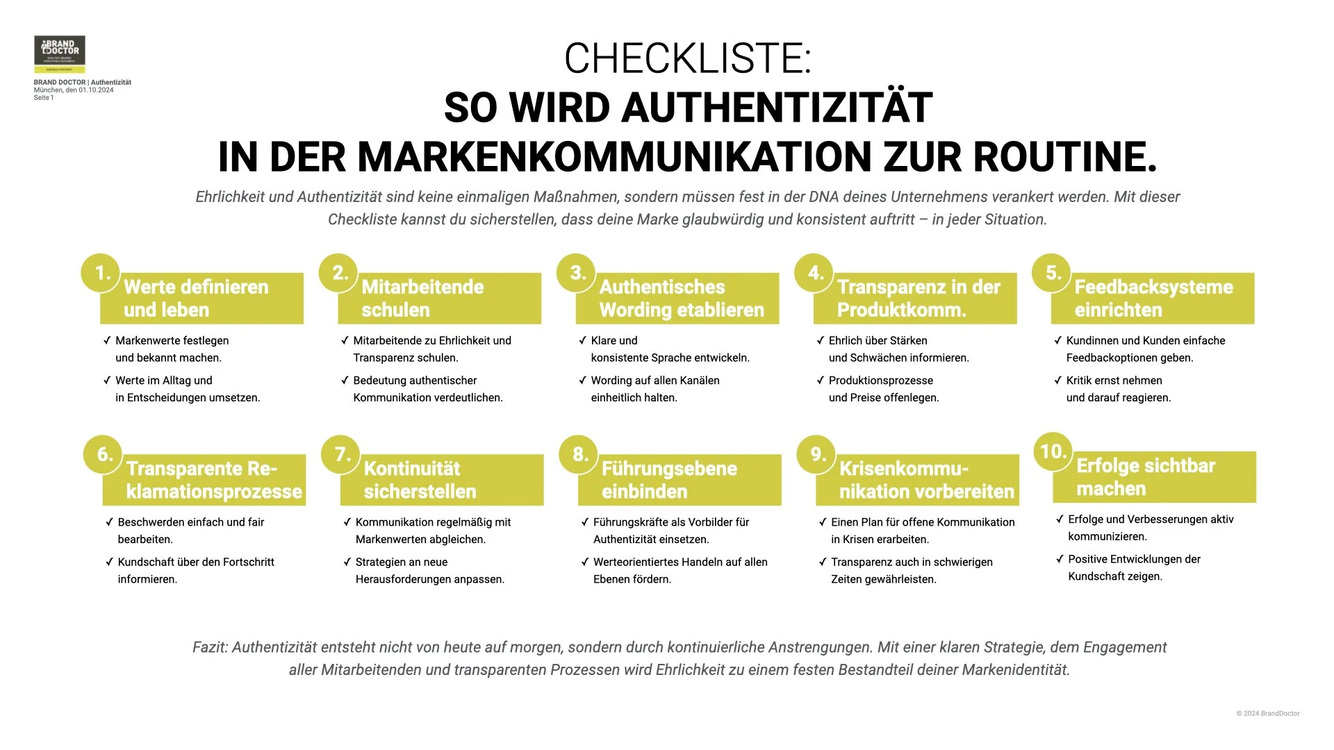 Mit dieser Checkliste kannst du sicherstellen, dass deine Marke glaubwürdig und konsistent auftritt – in jeder Situation. (Abbildung: BrandDoctor)