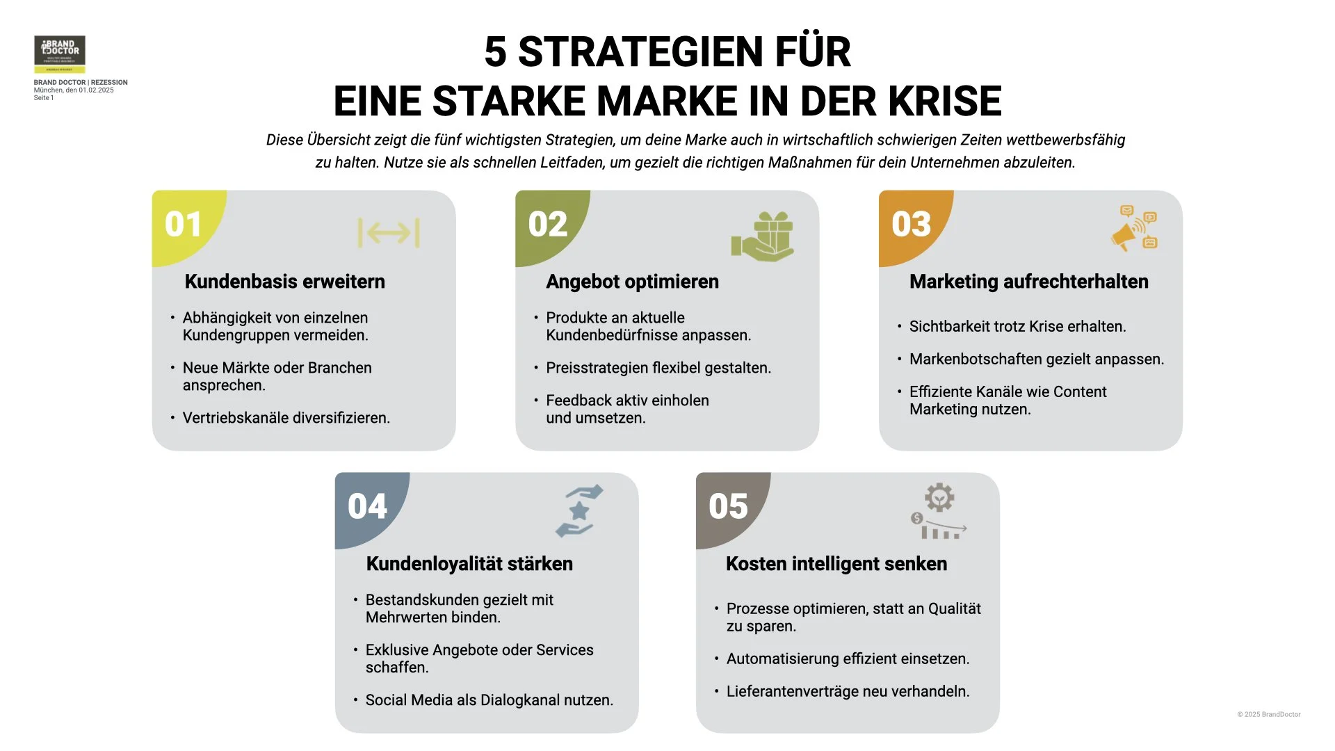 In Krisenzeiten ist es essenziell, nicht nur auf kurzfristige Einsparungen zu setzen, sondern die eigene Markenstrategie gezielt zu stärken. Proaktives Handeln und strategische Anpassungen können dabei den entscheidenden Unterschied machen.